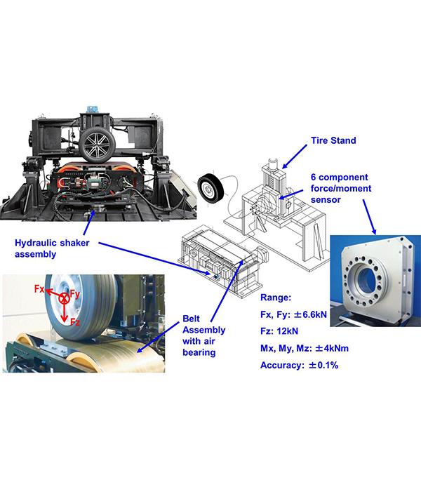 该皮带轮总成位于液压振动筛系统上,该系统能够以高度动态的方式模拟轮胎垂直运动和滑移角的产生。轮胎架本身能够在试运行期间改变轮胎垂直载荷和外倾角。使用安装在轮胎架上的a&D的6组件板力传感器(PFS),以高采样率测量轮胎所受的力和力矩。可根据预期应用定制配置、范围和性能。