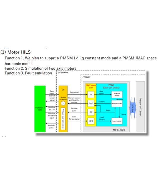 · 通过与拥有先进 FPGA 安装技术的丰田技术开发公司 (TTDC) 合作,可以安装由 TTDC 制造的 JMAG-RT 兼容电机模型。此外,自动、准确地剔除大容量 RTT 文件的专利技术实现了抑制精度下降的模拟。